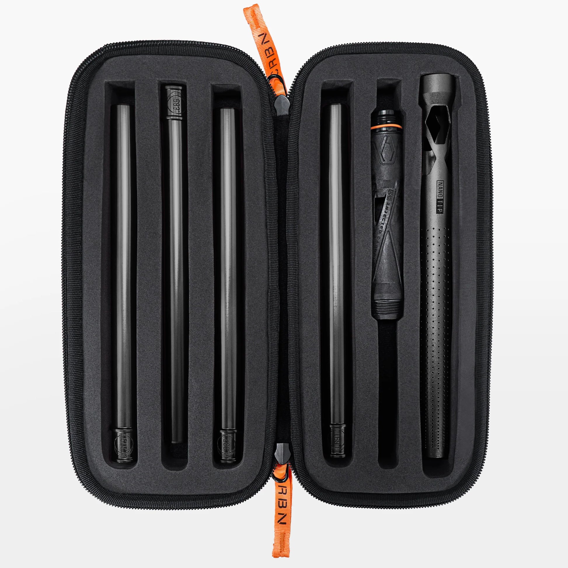 IC NANO Barrel Kit combines our famous ultra lightweight injected carbon back and micro ported aluminum barrel tip with four critical bore size PWR inserts: .679 / .683 / .687 / .689: all match anodized and packaged in a new lightweight foam lined zippered case. Everything you need for accurate performance with any paint in all weather conditions.